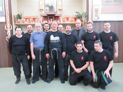 Cette année-là nous étions un groupe assez nombreux. Avec Seno sensei, Steve Olsen et quelques Japonais, je m’étais retrouvé à aider Soke pour une exposition de peinture qu’il devait faire à Tokyo. Nous devions sortir les peintures des cadres pour nettoyer ces derniers. J’ai eu le privilège de voir des peintures de Soke que peu de gens verront. Dans l’une des photos, on voit Nicolas tenir un DVD de défense contre couteau, une vidéo que nous avions tournée pour Quest quelques années auparavant. Pour les autres photos, touristes et entraînement.